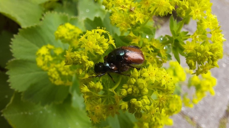 Nu de meikever periode over is, je vindt ze vaak dood op de grond, komen de rozenkevers tevoorschijn. Ze verschijnen met meerdere tegelijk. Ze zitten soms bij elkaar in een plant onder de blaadjes.