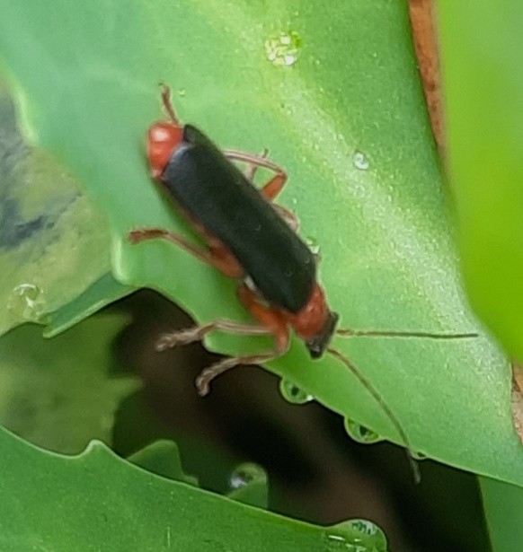 Je ziet ook veel langwerpige zwarte en rode kevers. Dit zijn soldaatjes of weekschildkevers.