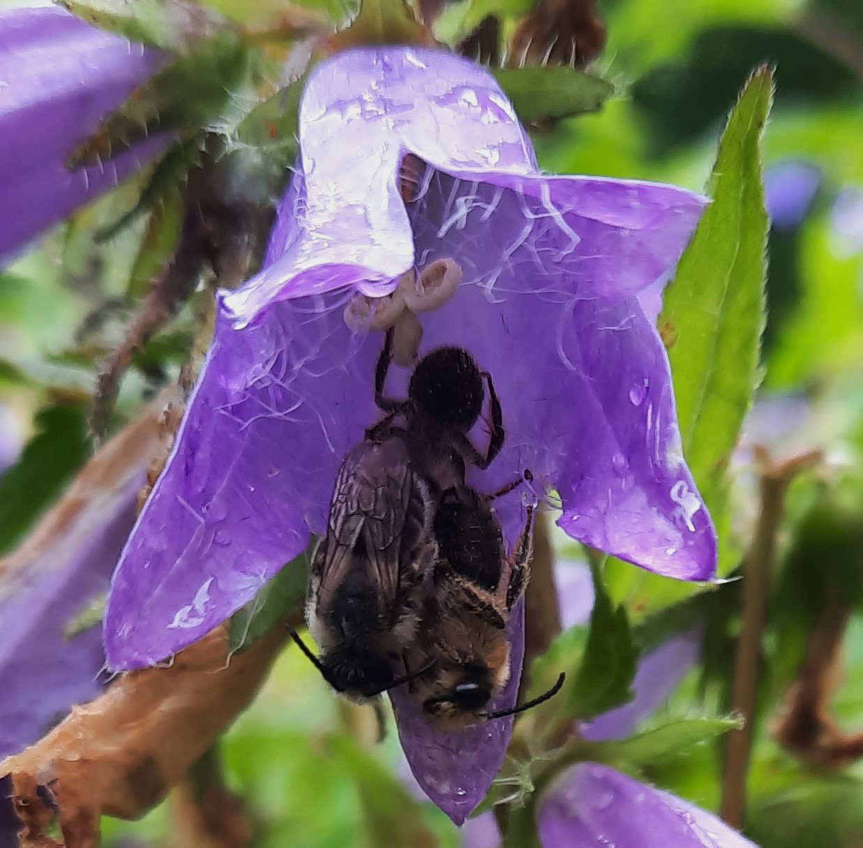 Een andere leuke soort die nu vliegt is de Klokjesdikpoot. Deze bijtjes zitten in Campanula’s, klokjes.