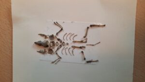Sommige kinderen maakten een leuk schilderijtje van hun gevonden botjes. Tijmen kon zelfs weer het geraamte van een muis namaken!