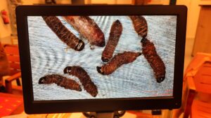 Meerdere leden van de zoogdierenwerkgroep liepen rond om iedereen te helpen met het op naam brengen van de gevonden kaakjes. Op de pas aangeschafte LCD microscoop en met behulp van de zoekkaarten kon je goed zien, bij welke muis het kaakje hoorde.