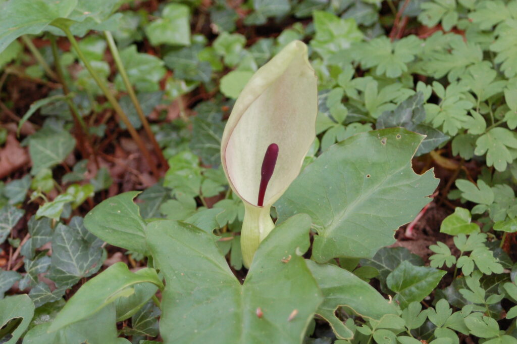 Er zijn veel aronskelken met daarbij een bijzonder verhaal over insecten lokken en opsluiten voor de bestuiving. Ook bloeien de kastanjes, de beuken en de dennen. Daarnaast zijn er misschien nog lelietjes van dalen, daslook, salomonszegel, grote muur en andere kleinere bloemen.