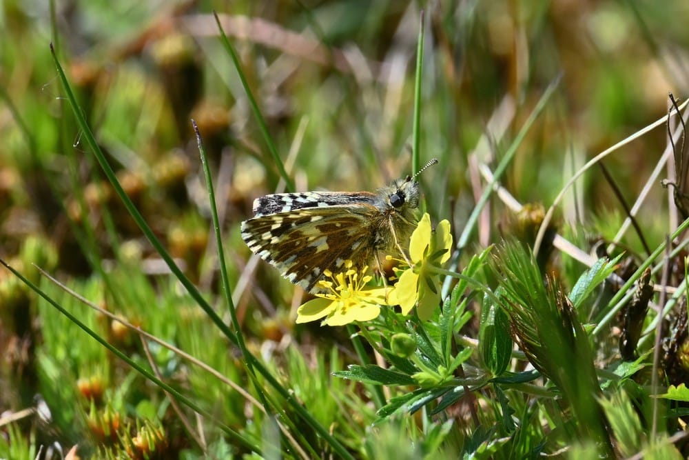 De zeldzame aardbeivlinder (Pyrgus malvae) is een zeldzame soort in Nederland en gaat langzaam achteruit. In het recente verleden is deze soort gespot in het Hart van Drenthe. Vier leden van de Werkgroep Insecten zijn daar op 11 mei met succes op zoek gegaan naar deze bijzondere soort (foto: Ilse van de Beek).