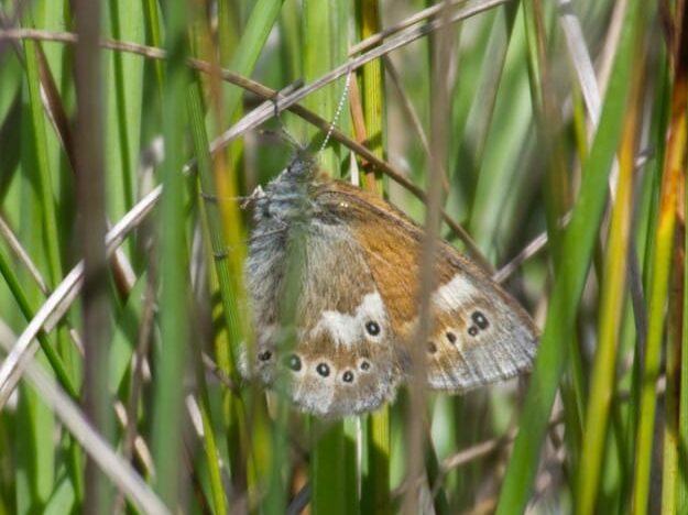 Op 29 juni is er door de Werkgroep een geslaagde poging gedaan om het Veenhooibeestje te vinden in het Hingsteveen (foto: Ilse van de Beek). Ook werden er de fraai gekleurde boomblauwtjes en zuringspanners gezien