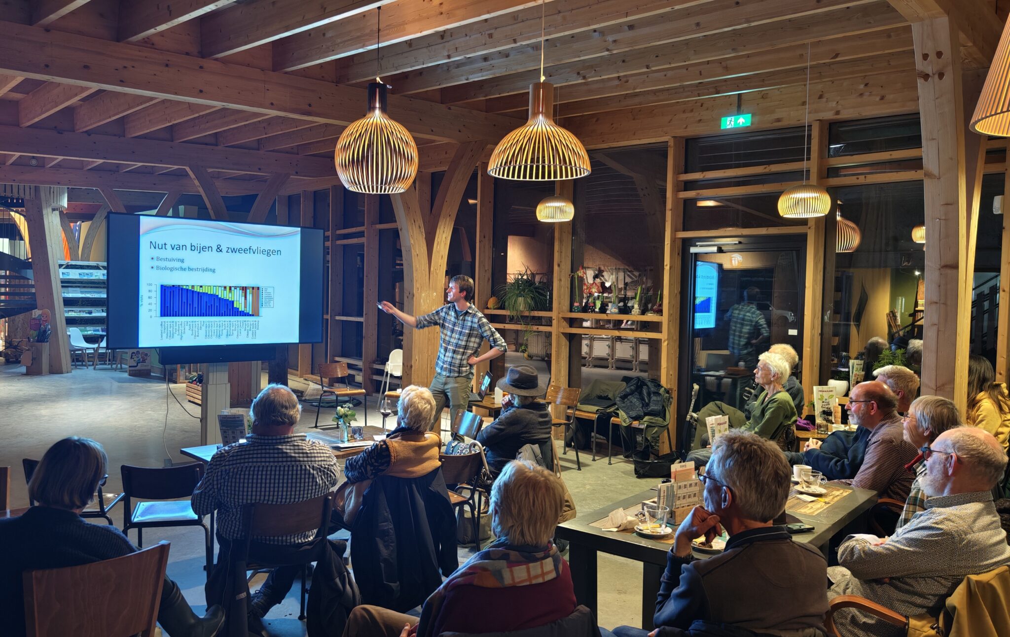 Op donderdagavond 20 februari hield bioloog en insectenkenner Marco Tanis van de Werkgroep Insecten van IVN-KNNV Assen een boeiende lezing over de twee grootste groepen wilde bestuivers: wilde bijen en zweefvliegen. Hierbij lag de nadruk op de in Assen en omgeving voorkomende soorten. Marco heeft hier de laatste jaren maar liefst 137 soorten van aangetroffen. Deze zorgen samen voor het overgrote deel van de bestuiving van planten. Hij vertelde de ruim twintig aanwezigen onder andere over de verschillen tussen deze twee groepen, de leefwijzen, de voortplanting en het gedrag. Ook de gevaren voor deze belangrijke insecten kwamen aan de orde, zoals insecticiden, verstedelijking maar ook natuurlijke vijanden zoals de krabspin. Een leuke uitspraak van Marco was dat je wilde bijen als “vegetarische wespen” zou kunnen zien zijn omdat het gedrag van deze twee soorten op elkaar lijkt behalve het soort voedsel.