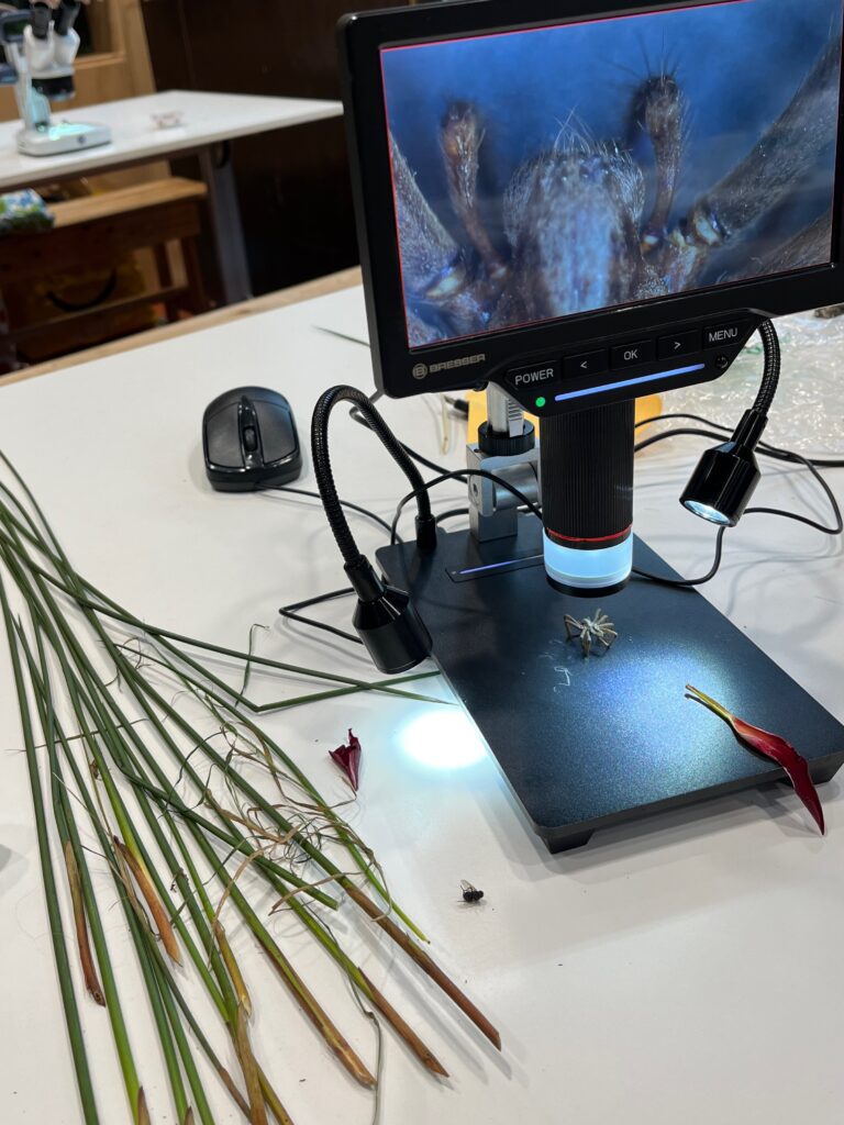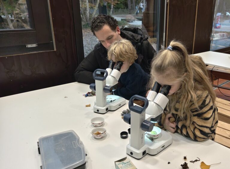 Op zondag 9 november stonden verschillende microscopen opgesteld in het Duurzaamheidscentrum in Assen. Bezoekers konden van alles bekijken onder stereo- en biologische microscopen. Vrijwilligers van de Plantenwerkgroep, Insectenwerkgroep en Paddenstoelenwerkgroep van IVN-KNNV Assen waren aanwezig om uitleg te geven over de werking van de microscopen en wat eronder te zien was.