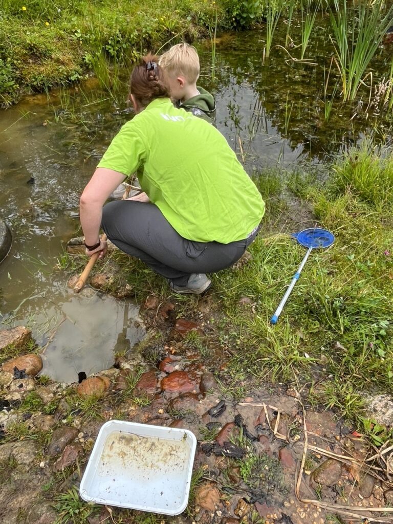 Gelukkig stond er dit jaar voldoende water in de vijver en konden de kinderen enthousiast met hun schepnetjes in de weer. Er werd van alles opgeschept: kikkervisjes, libellenlarven, kleine visjes, slakjes en verschillende watertorren. Met wat deskundige hulp, zoekkaarten en loepjes zochten de kinderen uit wat ze hadden gevonden. Als beloning was er na afloop een verrassing en een slootjesdiploma.