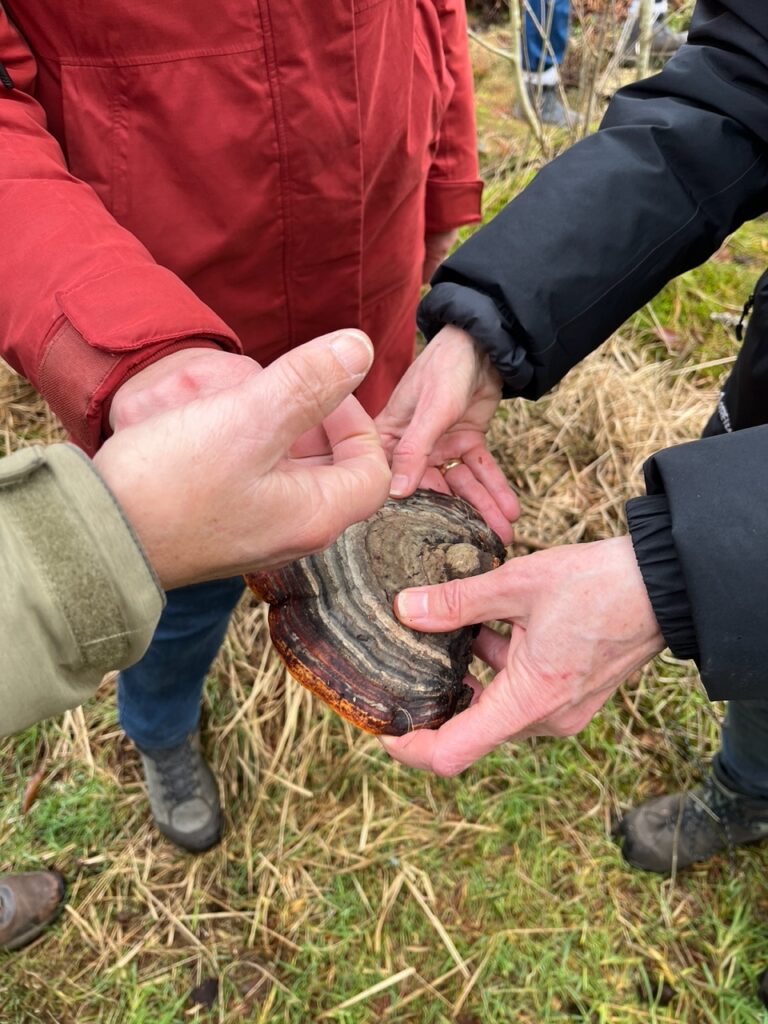Veel mensen denken bij paddenstoelen vooral aan de herfst. Maar ook in de winter zijn allerlei zwammen te zien. Ruim 30 mensen hadden zich aangemeld voor de wandeling op 10 februari 2024 in natuurgebied Het Groote Zand bij Hooghalen. In drie groepen gingen we, met gidsen van de Paddenstoelenwerkgroep van IVN-KNNV Assen, op zoek naar winterzwammen. Iedereen was verbaasd hoe veel verschillende soorten er waren.