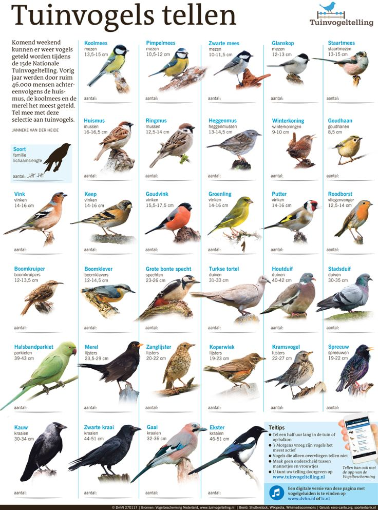 - Geef online door via de app van de tuinvogeltelling of via tuinvogeltelling.nl