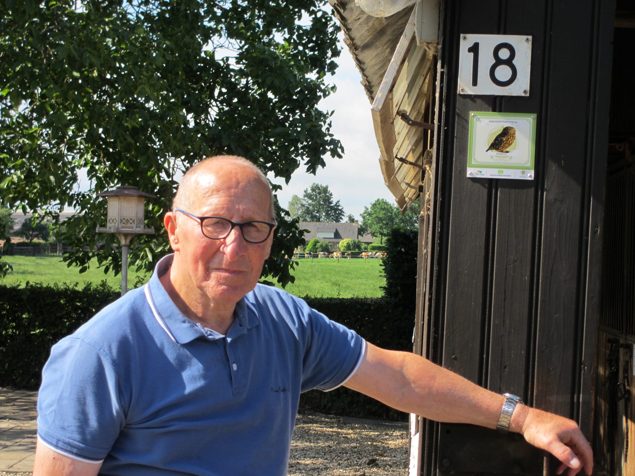Enkele jaren geleden heeft hij zelf een steenuilenkast gemaakt en die opgehangen in een knotwilg en er broeden al drie jaar op rij steenuiltjes in de kast.