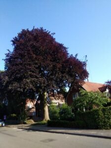 Gerrit is in 1933 geboren in het huis wat op de hoek Vliegenvelderslaan – Graaf van Lyndenlaan staat, met die mooie rode beuk ervoor. De Vliegenvelderslaan was toen nog een zandweg. De wijk er tegenover, industrieterrein Harselaar en de A1 waren er nog niet. Hij had de vrije natuur voor de deur. Buiten zijn was zijn lust en zijn leven. Bij de boer tegenover het ouderlijk huis hielp hij met alles wat er te doen was. Vooral vogels herkennen werd zijn passie. In de weilanden tegenover zijn huis, wemelde het van de vogels, er waren houtwallen, bosjes en kruidenrijke percelen, waar veel weidevogels gelegenheid kregen hun jongen groot te brengen. Gerrit kende alle soorten aan hun zang, hun uiterlijk en gewoonten. Op een dag zag hij in een houtwal op de Vaarst een kleine rode beuk. Hij groef die uit en bracht de boom, achter op zijn fiets naar huis. Hij plantte de beuk voor zijn ouderlijk huis: de rode beuk staat er nog, minstens 90 jaar oud.