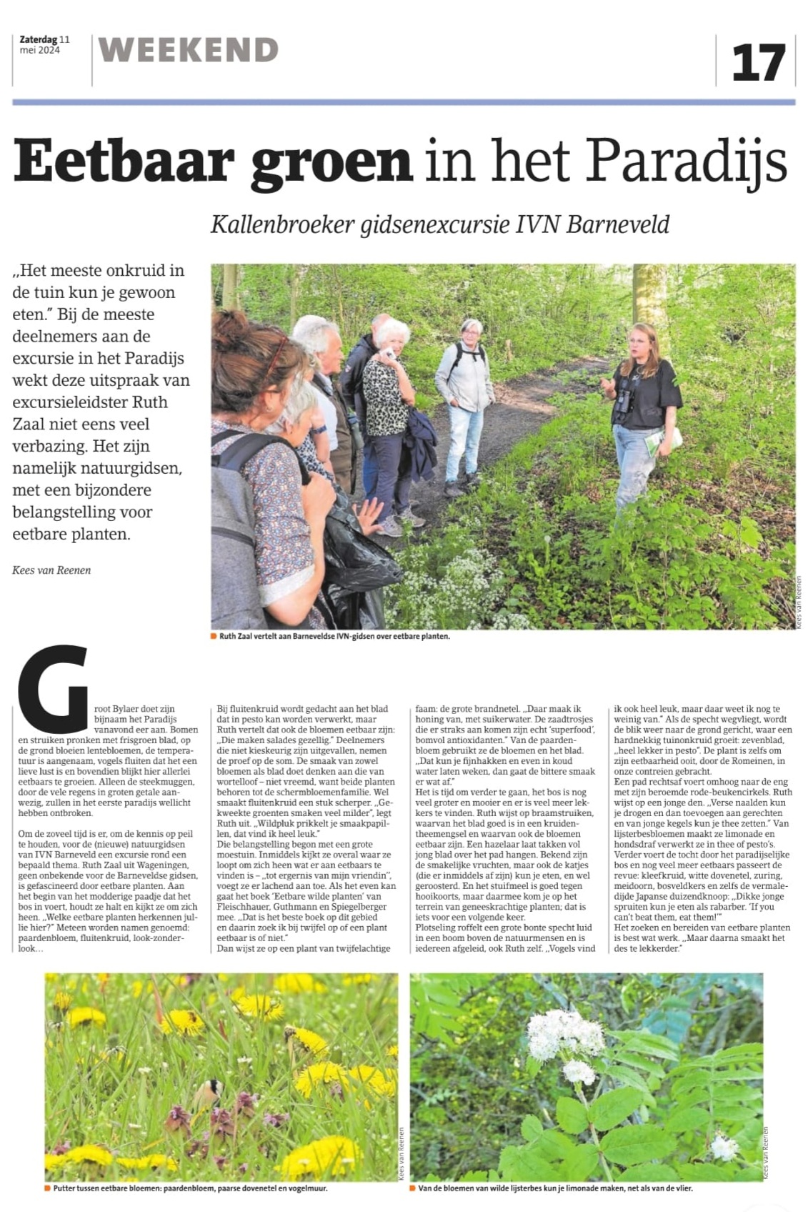 “Het meeste onkruid in de tuin kun je gewoon eten” Bij de meeste deelnemers aan de excursie in het Paradijs wekt deze uitspraak van excursieleidster Ruth Zaal niet eens veel verbazing. Het zijn namelijk natuurgidsen, met een bijzondere belangstelling voor eetbare planten.