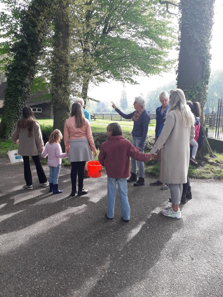 “Kijk maar eens goed wat er in het nestkastje zit….”. Voorzichtig gluurden de kinderen in het opengemaakte nestkastje. “Oh er zitten echt eitjes in”. Eén voor één klommen de kinderen op hun meegebrachte omgekeerde emmer en de allerkleinsten werden opgetild om in het nestkastje te kijken. Bij hoge uitzondering mochten de kinderen onder begeleiding van een IVN-gids voorzichtig in het nestkastje kijken.