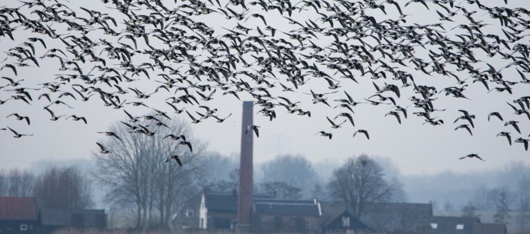 De vorstgrens is een belangrijke graadmeter voor de vogels om ergens te blijven of weg te trekken. Met het verschuiven van die vorstgrens, schuiven ook de vogels mee. ,,Door de nattigheid zie je hier steeds meer ganzen. Vroeger gingen wij naar de Oostvaardersplassen om ganzen te zien. Als je de natuur geschikt maakt voor vogels komen er vanzelf meer. Dat kun je al zien in je eigen tuin.”
