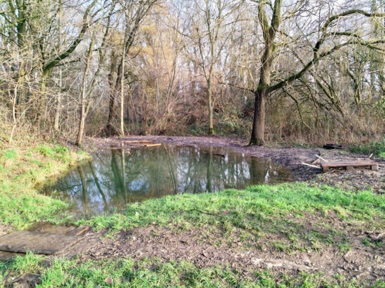 De rand van het weiland bij de poel is al voor een behoorlijk deel ontdaan van braamstruiken, maar het werk is niet af. Daar gaan we ons 13 december mee bezig houden. De bedoeling is dat het een ruigterand wordt met hoog opschietende bloeiende kruiden, denk aan Engelwortel, Gewone berenklauw, Teunisbloem, Wilgenroosje en meer van soorten als deze.