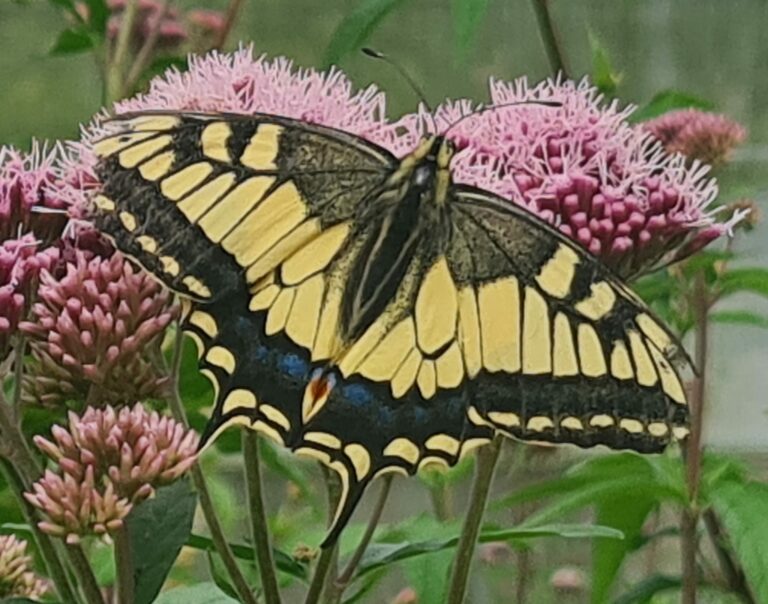 Een klein groepje sloot zich weer bij de bijengroep aan na een bezoek aan het insectenmuseum. Zij hebben genoten van een zeer kindvriendelijke uitleg over alle kruip-, sluip- en kriebelbeestjes en hun nut voor de natuur. En natuurlijk konden we de (inheemse) soorten zelf bewonderen, want gelukkig was het een zonnige dag waarop de vlinders zich goed lieten zien.