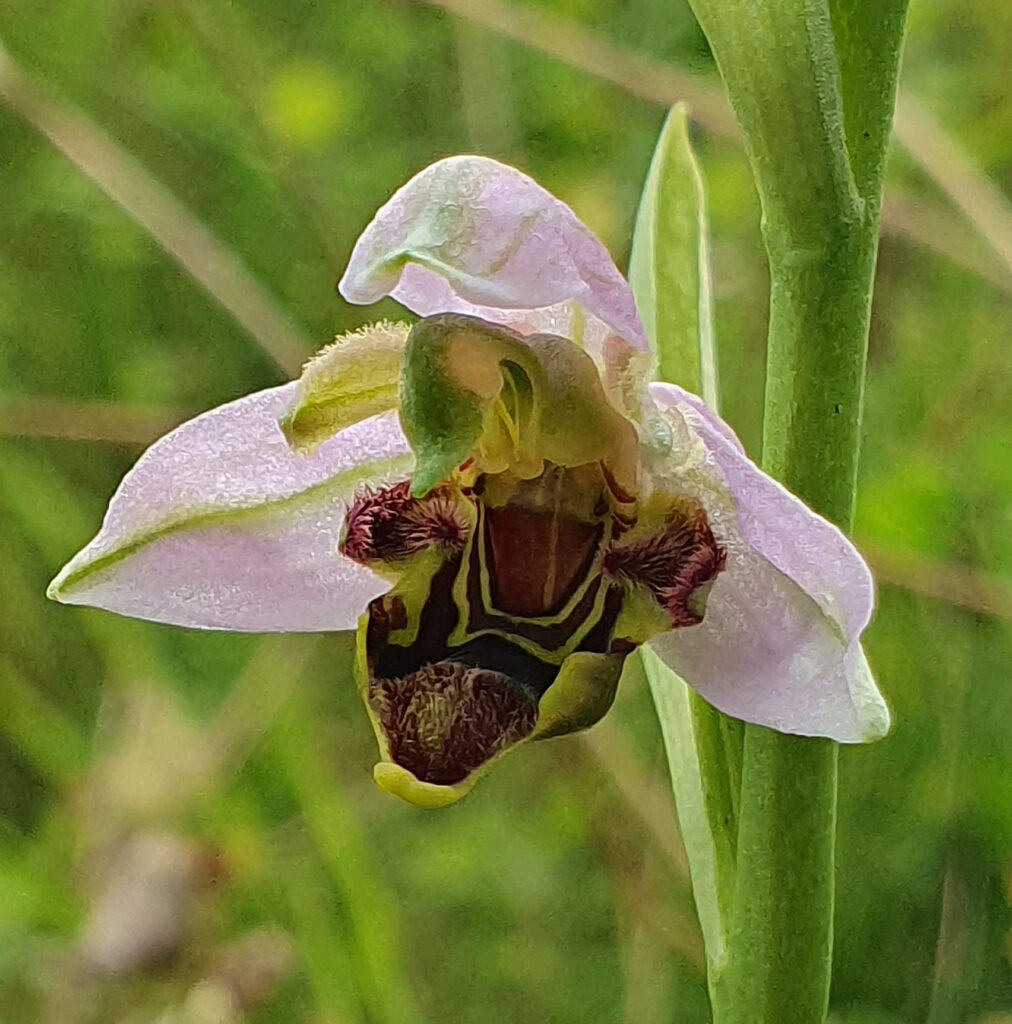 De Bijenorchis (Ophrys apifera) is een opvallende soort. Het onderste deel van de bloem lijkt op een bij, of nog meer op een hommel.