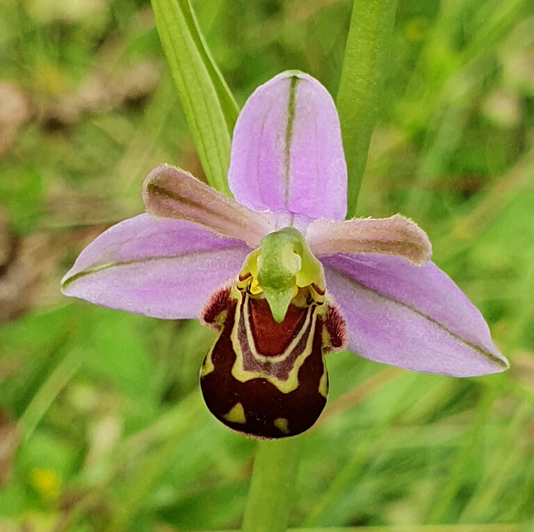 De Bijenorchis (Ophrys apifera) is een opvallende soort. Het onderste deel van de bloem lijkt op een bij, of nog meer op een hommel.
