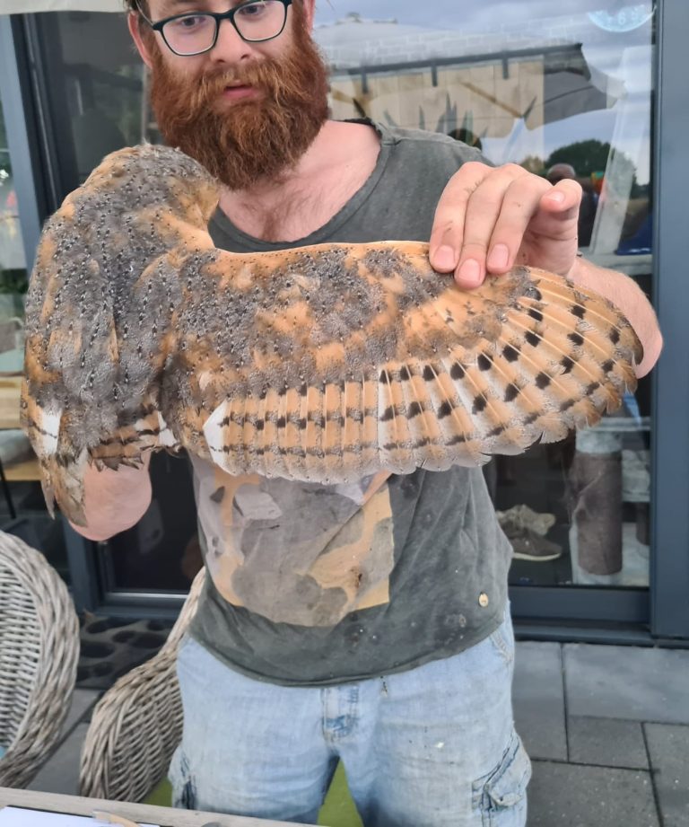 Middels de gegevens van al die opnames kon een tijdsberekening gemaakt worden wanneer die jongen konden worden geringd. Na overleg met de huiseigenaar was 11 augustus het beste moment om dit te doen. Vincent, die onlangs als gecertificeerde ringer zijn ervaringen had opgedaan, kon hier die avond aan de slag. Vijf prachtige exemplaren kregen toen hun eerste sieraad omgedaan. Kort hierna zullen ook zij de weide wereld ingetrokken zijn.
