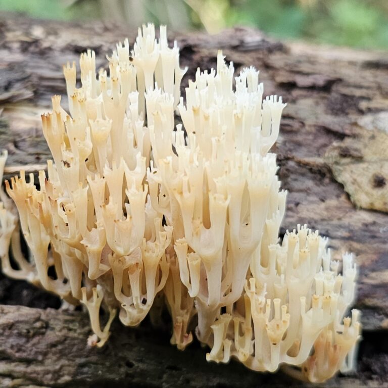Wat bijvoorbeeld te denken van deze Kroontjesknotszwam. Geweldig mooi om eens van dichtbij te bekijken. Elk bekervormig takje van deze op een koraal lijkende zwam is voorzien van een vier- of vijftoppig kroontje. Deze soort is vlak voor de eeuwwisseling voor het eerst in Nederland gevonden. Nu is hij in het zuiden redelijk algemeen, maar in de noordelijke helft nog steeds zeldzaam. Het lijkt erop dat deze zwam profiteert van het warmer wordende klimaat en langzaam naar het noorden opschuift.