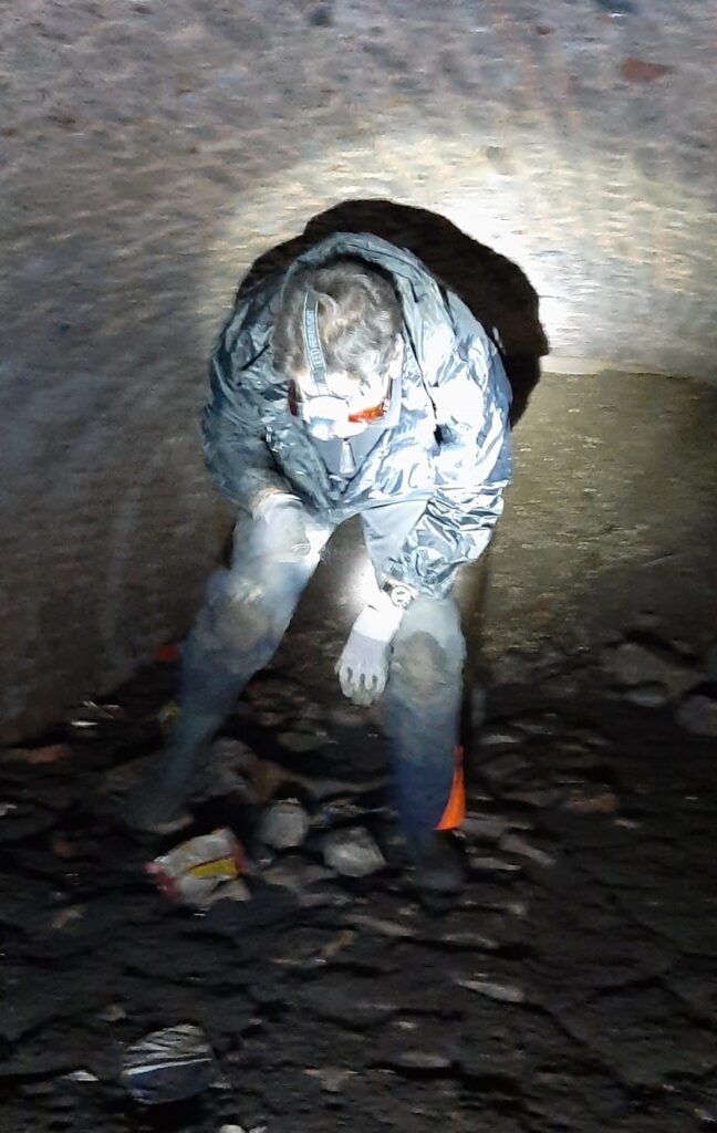 Het is koud en aardedonker in de kelderruimte. Je kunt er alleen maar gebukt staan en de vloer is nat. Maar soms moet je toch op je rug gaan liggen om goed in de spleten tussen de mergelblokken te kunnen kijken. Meestal zonder succes, trouwens. Als dan ook nog een druppel water pets! in je nek valt, dan vraag je je af waarom je die winterochtend vroeg uit je bed gekommen bent.
