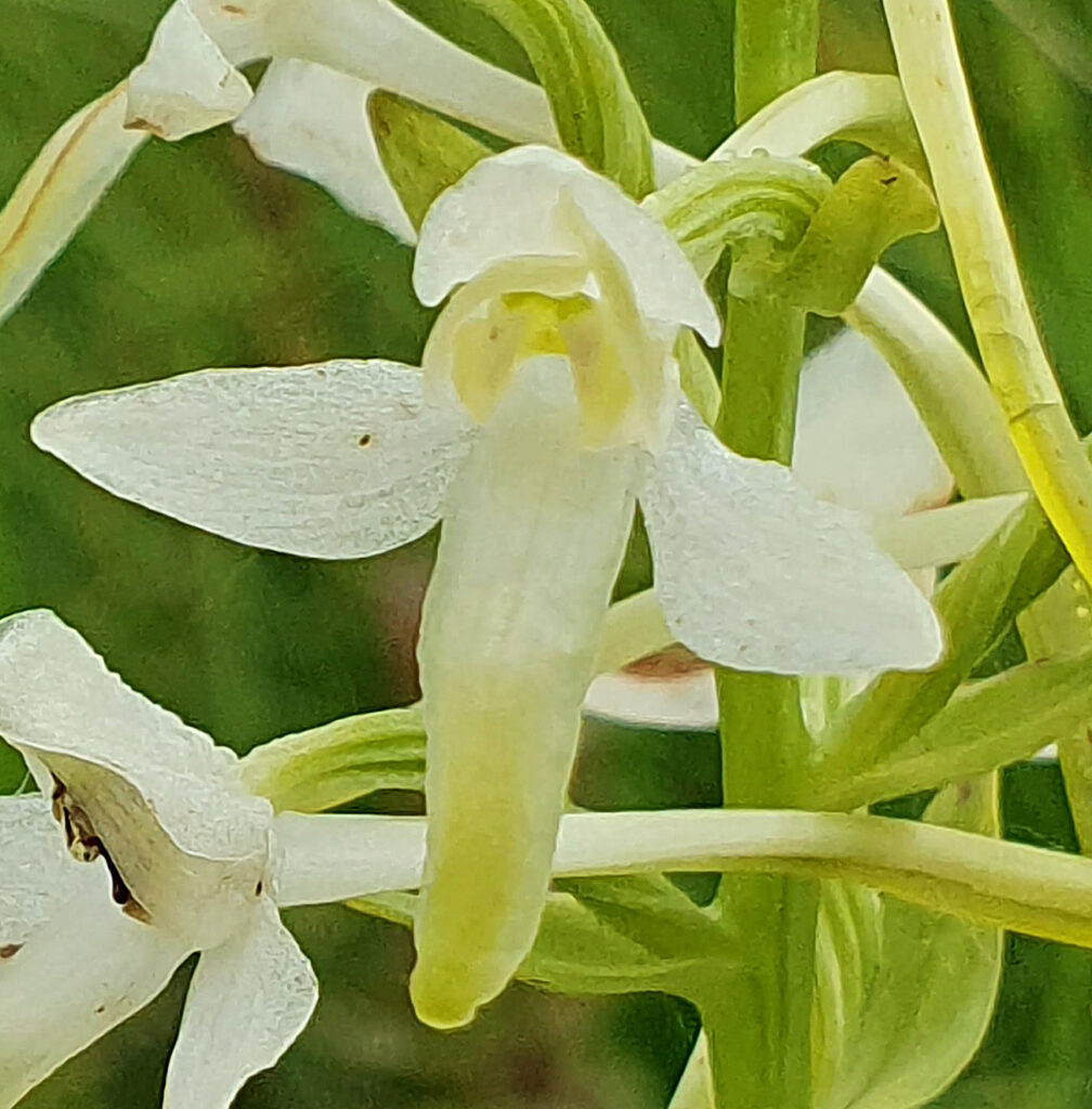 Dit is een bloem van de Welriekende nachtorchis (Platanthera bifolia), maar het kan ook om de kruising Welriekende nachtorchis x Bergnachtorchis gaan.