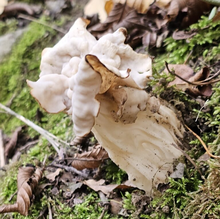De witte kluifzwam (Helvella crispa) heet algemeen te zijn in Nederland, toch kom ik deze paddenstoel maar zelden tegen.