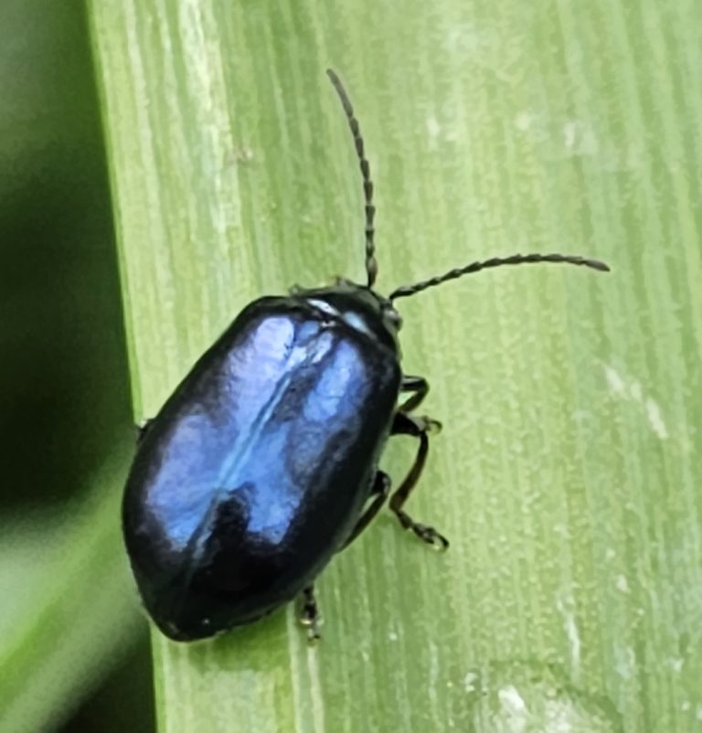 Een middelgrote kever, net geen centimeter, waarvan de larven leven van het blad van de Els. Dit kevertje is opvallend glimmend staalblauw, maar koperkleurig en groenig metaalkleurig en alles daartussenin is bij bladhaantjes mogelijk. Vandaar de naam ‘haantje’. De bladeren van de Els lopen nu net uit. De vrouwtjes van het Elzenhaantje leggen aan de onderkant van het blad honderden eitjes. In ongeveer twee maanden doorlopen deze de hele cyclus, van ei via rups tot volwassen dier.