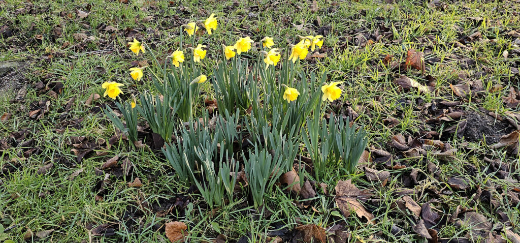 Sommige planten lopen ook behoorlijk voor, zoals een pol grootbloemige Trompetnarcissen, een afstammeling van de Wilde narcis (Narcissus pseudonarcissus). Gewoonlijk komen deze pas in maart in bloei. De natuur gokt graag. Vroege vogels (en planten) kennen weinig concurrentie van hun soortgenoten. Onder gunstige omstandigheden levert dat sterke nakomelingen op. Maar als de condities ongunstig zijn …, ja, dan pech gehad.