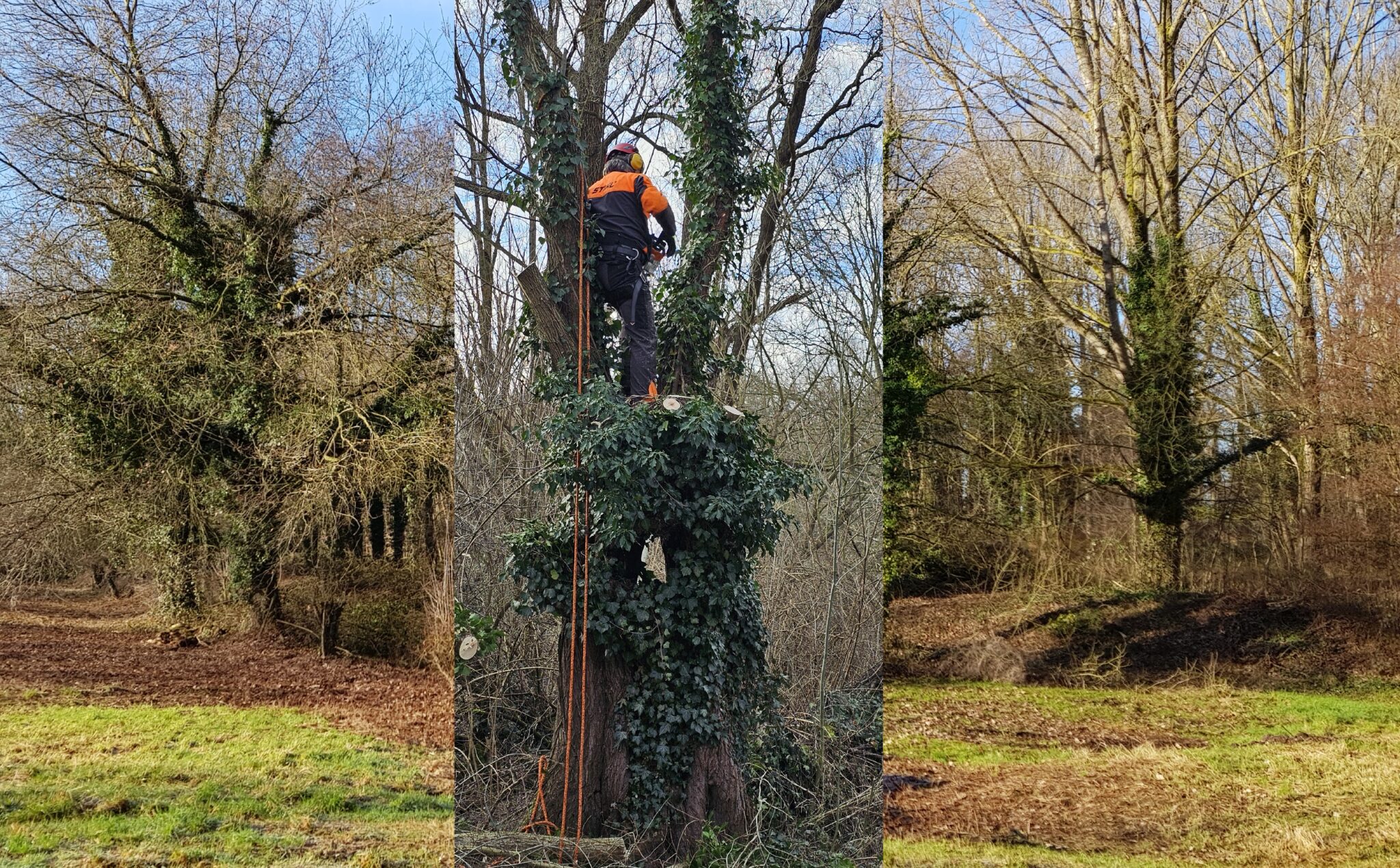 Fijn dat het Steunpunt Landschapsbeheer van Limburgs Landschap dit karwei op zich wilde nemen. En vandaag is hij dan geknot. Hopelijk gaat hij nog minstens een halve eeuw mee, het is een monumentale boom. En al die Klimop op de boom? Die laten we natuurlijk met rust. Een prima nestelplaats voor vogels en in het najaar, als de Klimop bloeit, een bron van nectar voor de insecten als er verder weinig bloeiende planten meer aanwezig zijn.