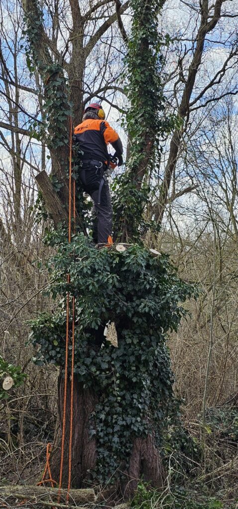 De boom had in de loop der jaren veel van zijn stevigheid verloren. Bovendien zat de ‘knot’ behoorlijk hoog. Geen werk voor het IVN, te gevaarlijk voor niet-professionele mensen.