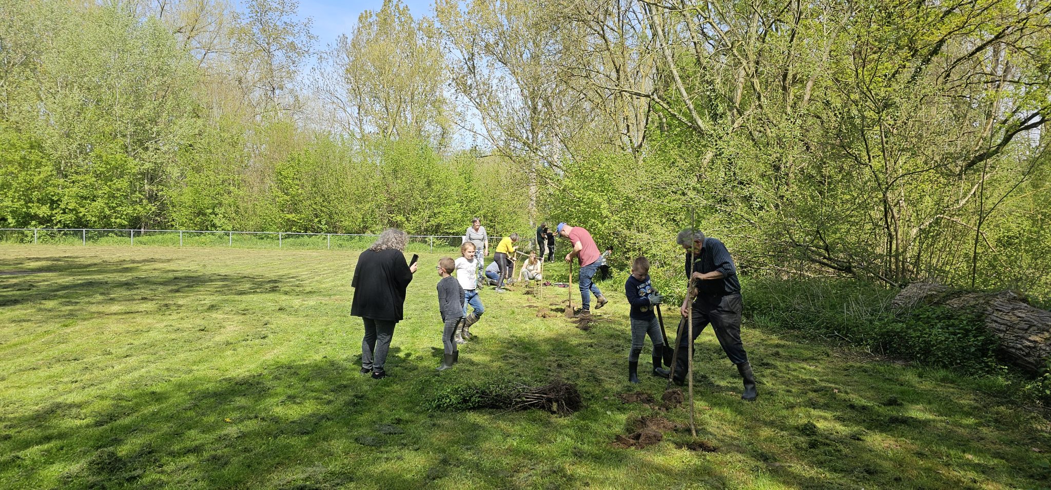 Woensdag 4 mei moesten de laatste 100 boompjes de grond in om uit te gaan groeien tot een mooie haag langs een terrein aan de Spoorstraat. Geplant werd door een tiental kinderen van ‘Huisje Nuinhof’, Buurtvereniging Hellebroek en medewerkers van het IVN. Het weer was mooi en dan wil je aan de slag.