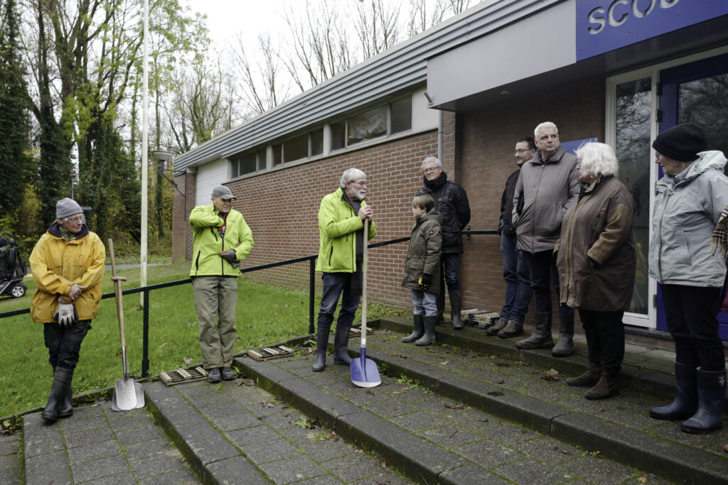 Burgemeester Geurts plantte de eerste boom en anderen, schenkers en geïnteresseerden, volgden. In het totaal zijn er hier 21 bomen geplant en nog enkele elders. Een geslaagde dag die werd afgesloten met koffie met wat lekkers in het scoutinggebouw. Scouting, daarvoor onze dank, even uit de kou was wel prettig. Volgend voorjaar zullen we zien of de bomen uitlopen en de jaren daarna hoe ze uitgroeien tot geweldige fruitbomen.
