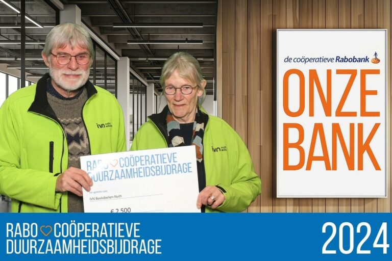 Donderdag 23 januari 2025 mochten we een cheque van € 2500,- in ontvangst nemen van de RABObank als coöperatieve duurzaamheidsbijdrage voor ons project in de Hellebroeker Beemden.