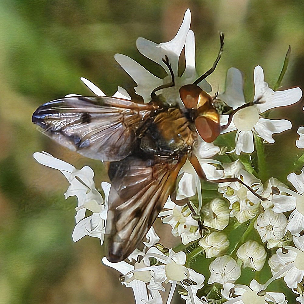 Ectophasia crassipennis is een Sluipvlieg zonder Nederlandse naam. Laten we hem ‘Vlekvleugelvlieg’ noemen.