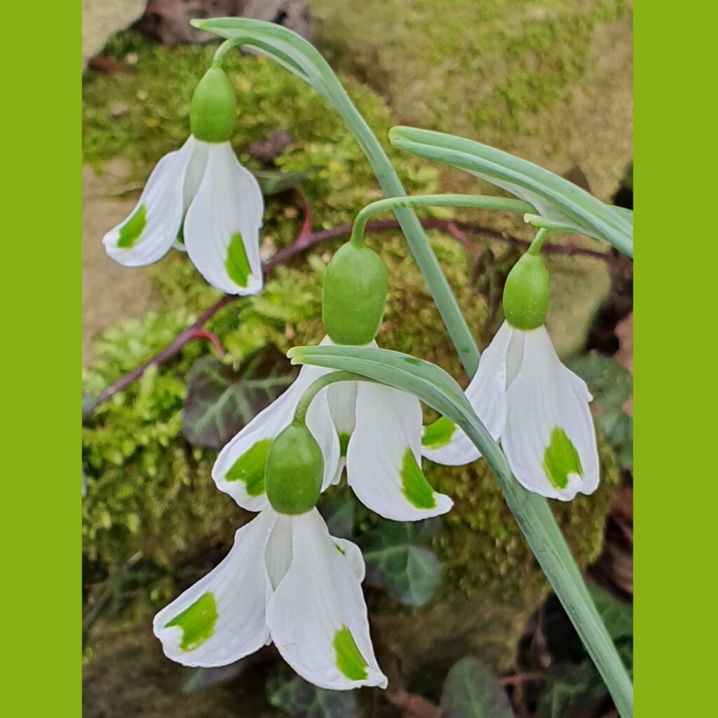 Maar nu het een week warmer geweest is bloeien ze heel snel uit. De variant ‘Trympostor’ is een van de laatste die nog volop in bloei staat. Met zijn pagode-achtige bloemen wordt dit in het algemeen een mooi sneeuwklokje gevonden, maar eigenlijk is het een mindervalide type. Het groen op de binnenste bloemblaadjes bij gewone exemplaren wijst insecten de weg: hier is nectar te halen en breng/haal wat pollen zodat tegelijk bestuiving plaats kan vinden. Bij ‘Trympostor’ is dit verstoord, het groen zit op de verkeerde plaats.