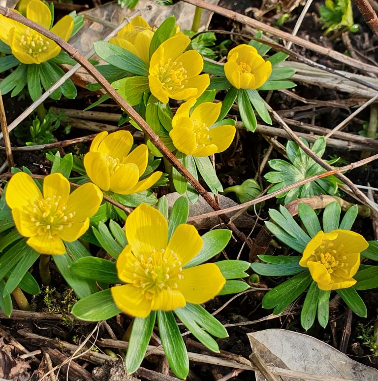 En dan zijn er natuurlijk Winterakonieten (Eranthis hyemalis) die de tuin geel kleuren. Geen wonder dat ik bij een zonnetje de eerste bijen gezien heb.