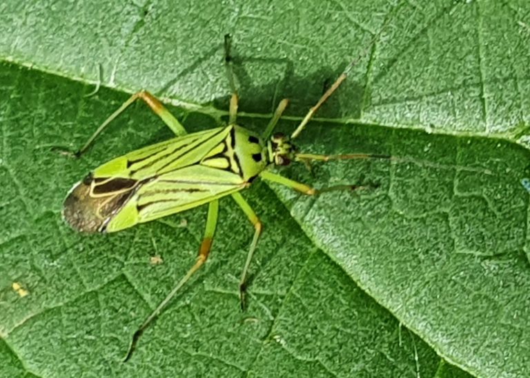 De #Essenprachtblindwants (#Mermitelocerus schmidtii) heeft een prachtige geometrische tekening. Als ik er een naam voor had mogen verzinnen had hij Art-decowants geheten. Ik ben wel blij met de vondst, de soort is in Nederland zeer zeldzaam. Deze wantsen leven vooral op Es (#Fraxinus excelsior) maar ook op #Grote #brandnetel (#Urtica dioica) als die er onder groeit. Hij zuigt sappen uit de planten maar eet ook van bladluizen en andere kleine insecten.