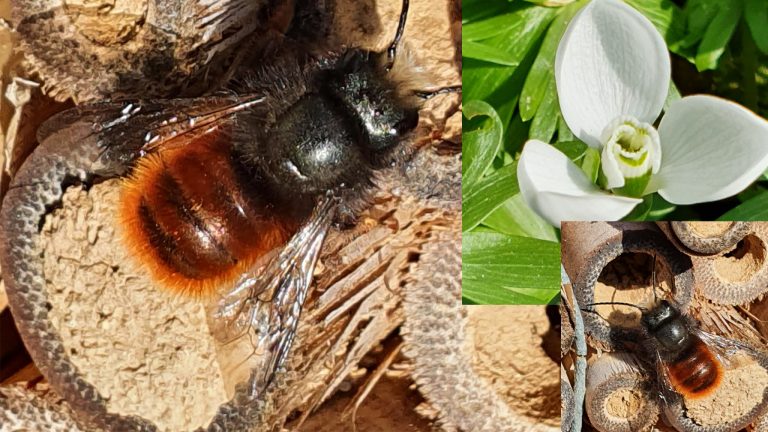 Het wordt warmer en de metselbijtjes vliegen weer. De #Gehoornde #metselbij (#Osmia cornuta) inspecteert nu het insectenhotel, maar de meeste kamers zijn nog bezet door bijtjes van vorig jaar die als pop nu nog aanwezig zijn. Voor de #sneeuwklokjes loopt het seizoen ten einde. De laatste die in mijn tuin nu begint te bloeien is variant van het Groot sneeuwklokje, Galanthus #elwesii ‘Polar Bear’. Mooi witte, wat omhoog gerichte bloemen, de binnenste bloemdekbladen vormen een kokertje. Mooie plek voor de metselbijen om nectar te verzamelen.
