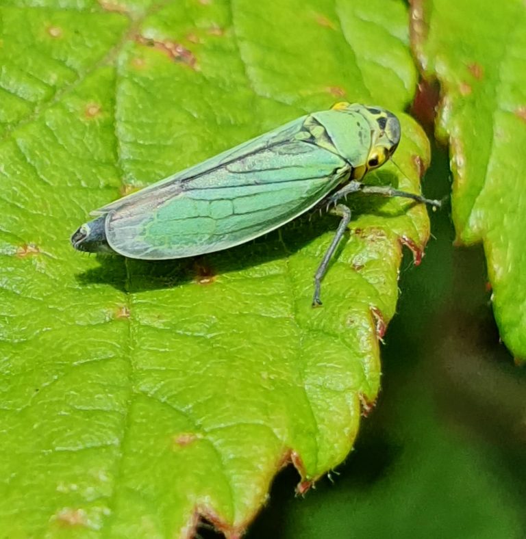 De Groene #rietcicade (#Cicadella viridis) is een opvallend maar klein diertje. Met een maximale grootte van bijna 1 cm moet je toch even goed kijken wat je ziet. Het is een algemene soort van drassige plaatsen waar de dieren op Zeggen (#Cyperaceae) en Russen (#Juncaceae) leven. In de herfst leggen vrouwtjes eitjes in het weefsel van de planten. In de lente komen deze uit. De jonge dieren vervellen 5 keer voor ze hun uiteindelijke volwassen vorm bereiken. Let er deze zomer eens op, tot september zijn de volwassen dieren nog te vinden.