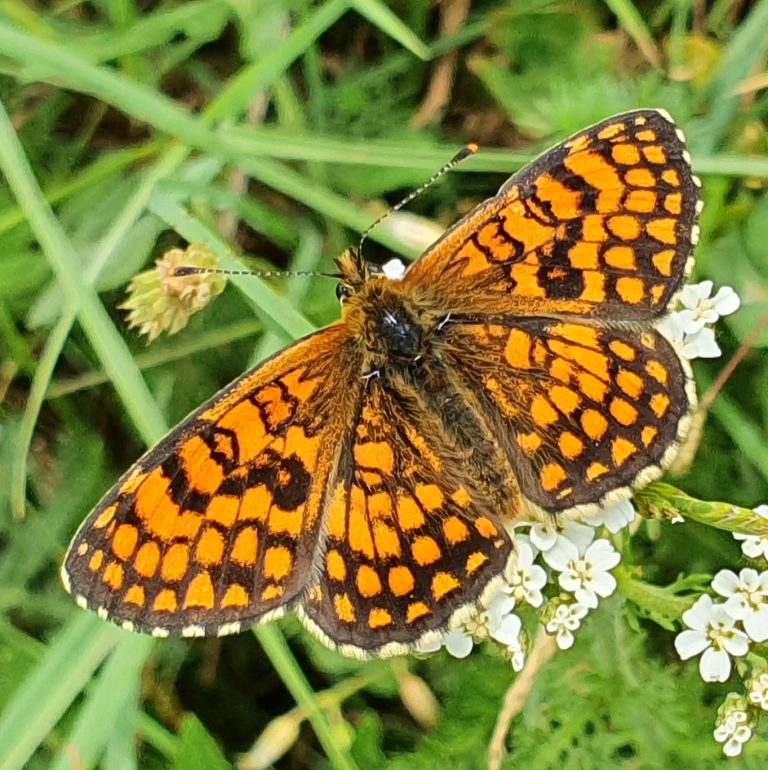 Vakantievreugd. In de Pyreneeën zie je niet alleen planten en dieren die uit het zuiden, maar ook soorten die in onze omgeving voorkomen of voorkwamen. De #Bosparelmoervlinder (#Melitaea celadussa) is in Nederland sterk achteruit gegaan en komt nog slechts in het oosten zeldzaam voor. De rupsen leven in Nederland alleen op de plant #Hengel (#Melampyrum pratense). Ze leven eerst in spinselnesten, waarin ze als halfvolwassen rups overwinteren. De verpopping vindt ook op deze waardplant plaats.