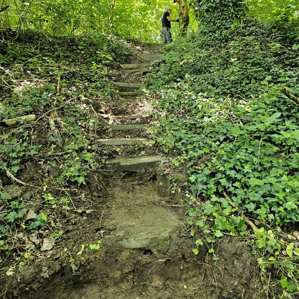 Opnieuw is het te herstellen pad in de Hellebroeker Beemden aangepakt. De trap is schoongemaakt en de eerste helft van het onderkomen deel van het pad is begaanbaar gemaakt. Het tweede deel hiervan is over een maand aan de beurt. Daarvoor moet de bodem namelijk wat droger worden om er goed te kunnen werken. Maar er zit een goede vooruitgang in, binnenkort kan het oude rondje Hellebroeker Beemden weer gelopen worden.