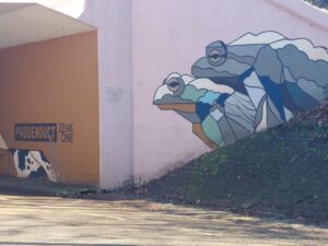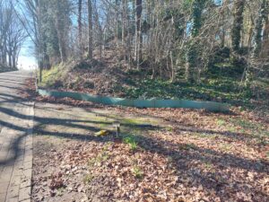 Vaak dwars door tuinen, bermen en woonwijken heen.