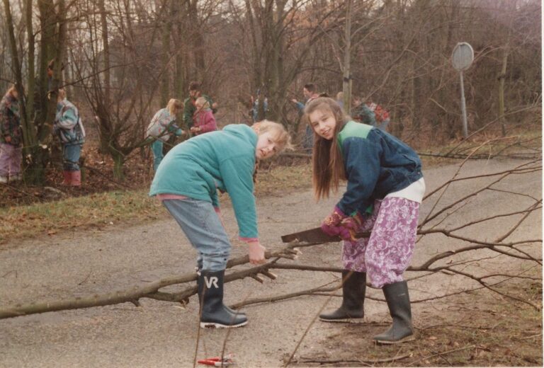 1997-03-17 De jeugdnatuurwacht helpt een handje mee bij het onderhoud van het bosje aan de Dintherveldse straat