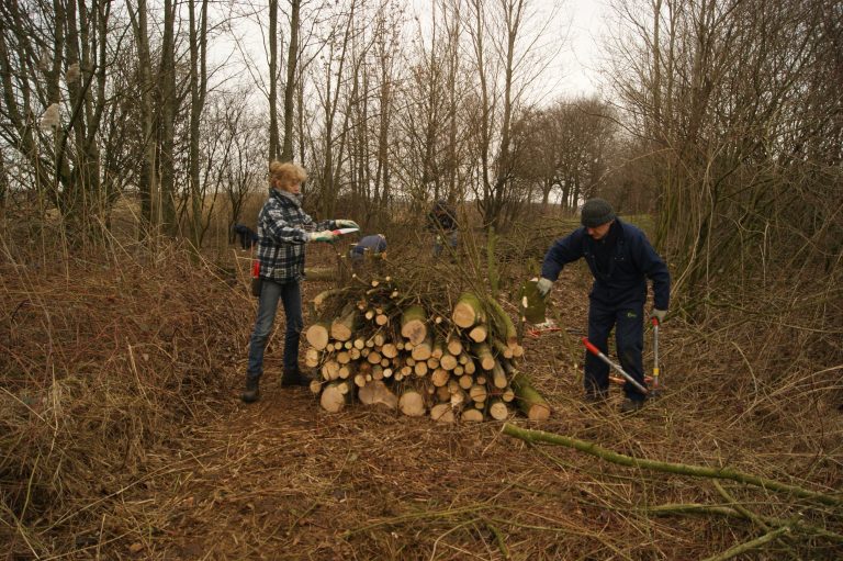Natuurwerkdag in het waterwingebied van Brabant Water in de Bleken in Loosbroek op 2 november 2019