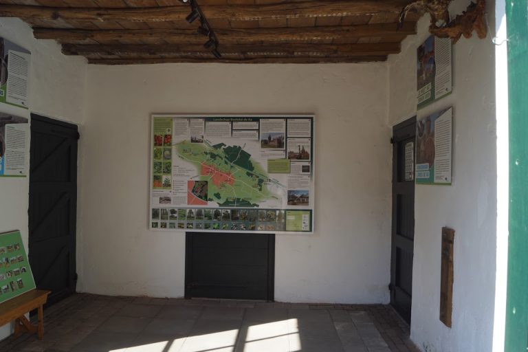 De grote deuren in de voorgevel waren nodig om in de beginjaren van het bestaan (tot 1938) de brandspuit onder te brengen; de grote achterdeuren voor andere grote voorwerpen.