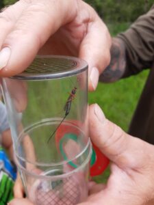 Al lopend kijken we of we deze dieren, of sporen ervan, kunnen vinden. Hoera we hebben alles gevonden … behalve de mol. Dat is vreemd, misschien voelt hij zich hier niet thuis. Met de loeppotjes hebben we allenlei insecten gevangen en bekeken. We hebben zelfs een insect gevonden waarvan de we naam niet weten. Een soort sluipwesp van wel 5 cm.
