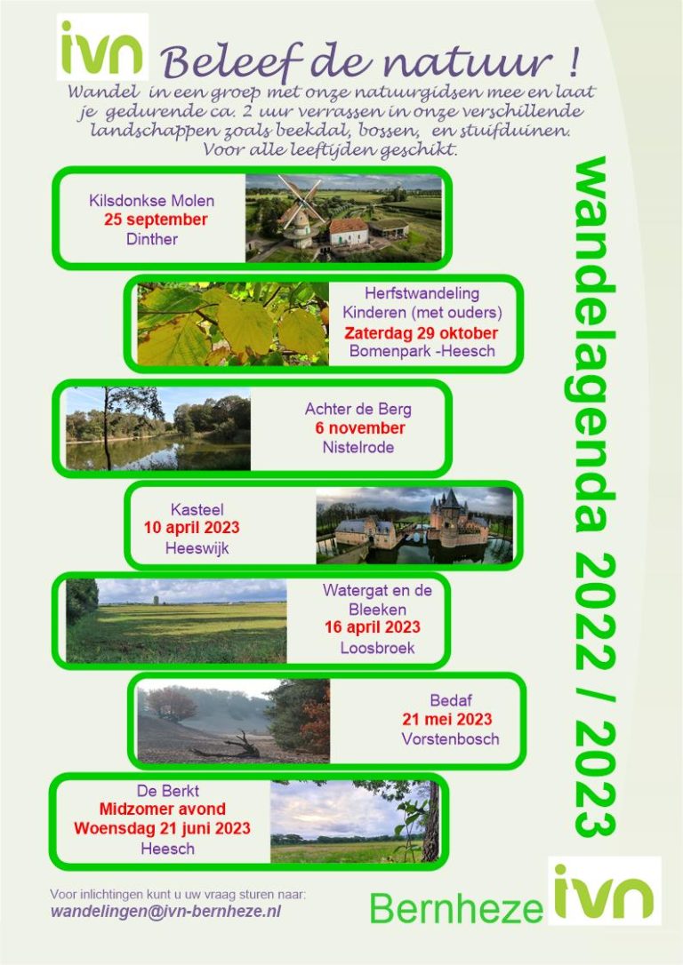 Wilt u meer weten over onze wandelingen? Ga dan naar wandelingen@ivn-bernheze.nl