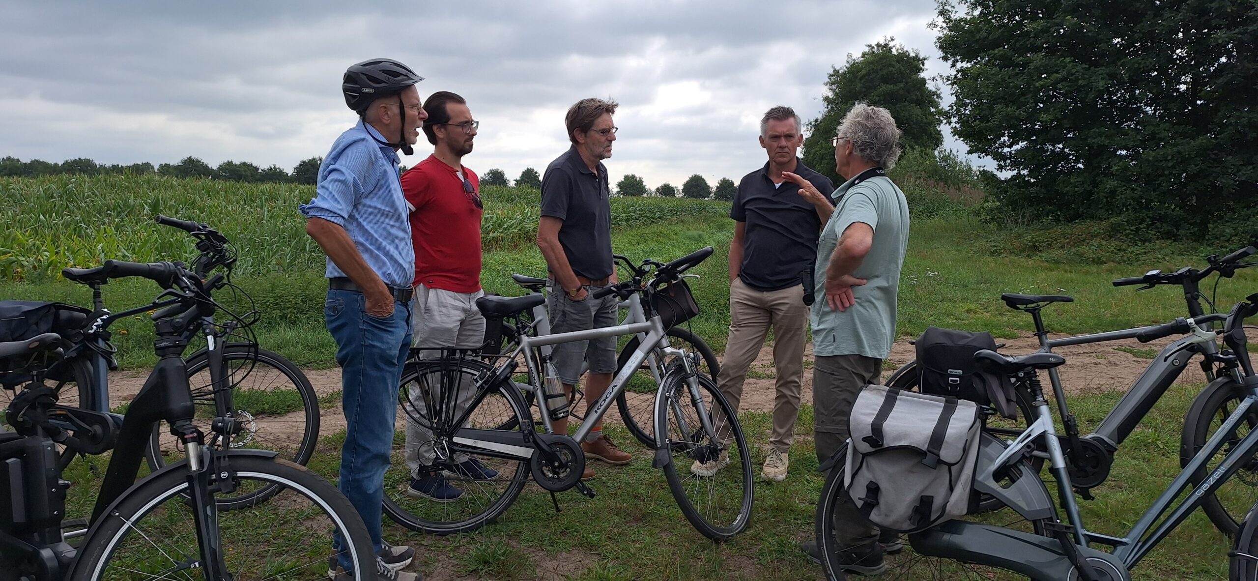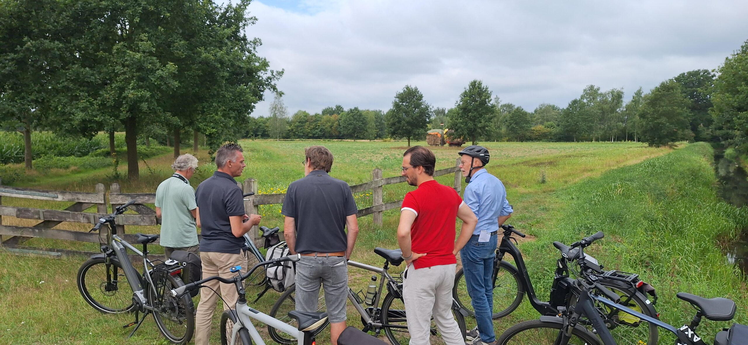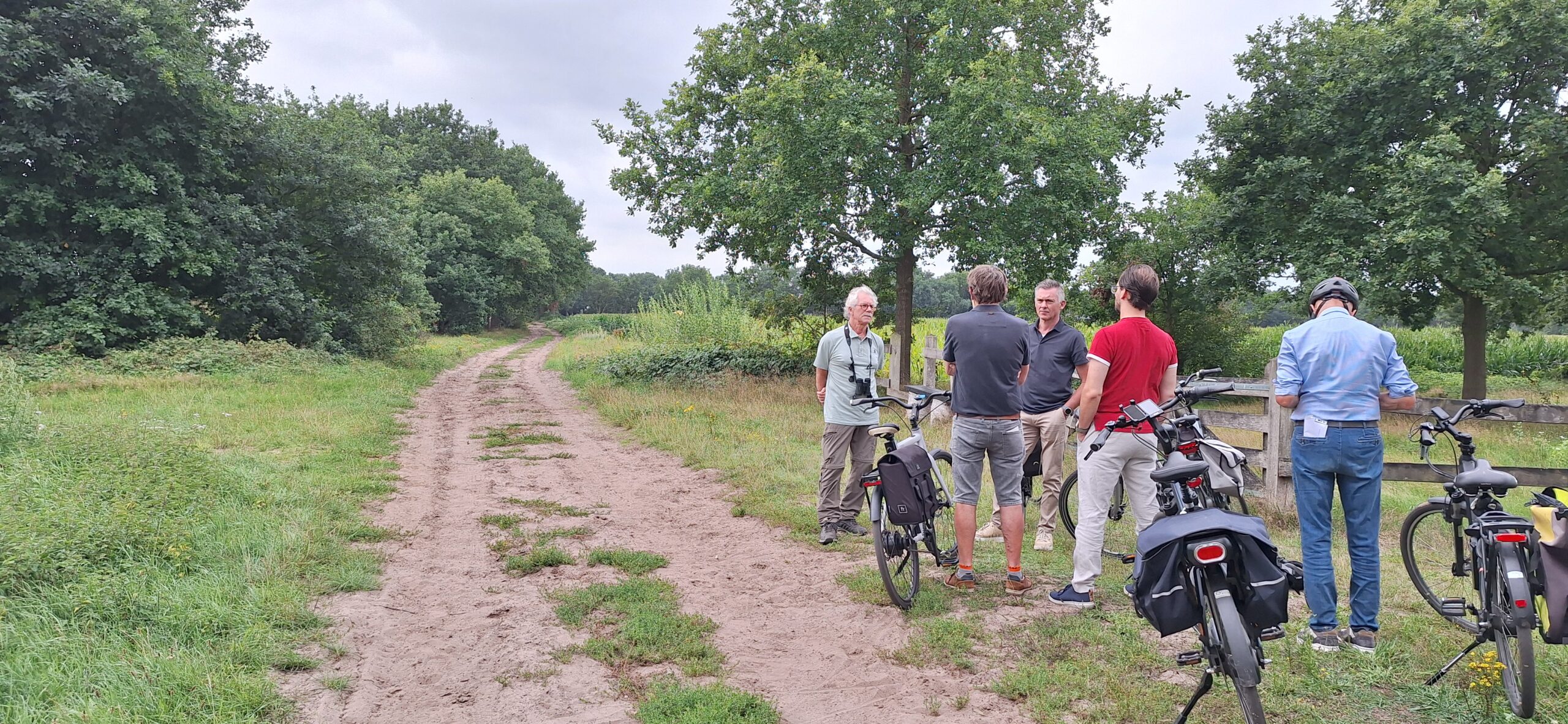 IVN Bernheze zet zich als groene partner van de gemeente Bernheze actief in voor natuurbeleving en het welzijn van inwoners. Terwijl de druk op lucht, water, bodem en biodiversiteit toeneemt, biedt natuur volgens hen juist oplossingen: van CO₂-opslag tot klimaatbuffer en het draagt bij aan het welbevinden van mensen. Daarom pleit IVN Bernheze voor beleid waarin natuur centraal staat. Op vrijdag 8 augustus gingen Theo Brienen, Jan Ruijs, Berry Setton en Lambert van der Ven met de fiets door Bernheze om de uitwerking van de omgevingsvisie in de praktijk te bespreken met wethouders Marius Tielemans en Maarten Everling.