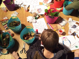 Wij gaan mee helpen zoeken. Met de dingen die je hebt verzameld, ga je een mooi kunstwerk maken.